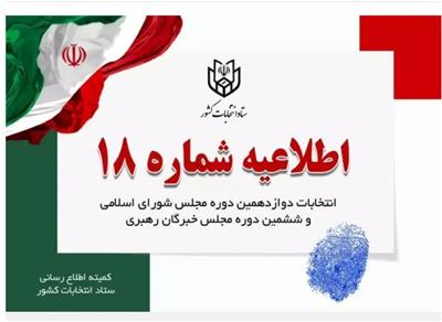 ستاد انتخابات کشور با انتشار اطلاعیه شماره 18 اعلام کرد: فرآیند اخذ رای در تمامی شعب سراسر کشور ساعت 8 صبح روز جمعه 11 اسفندماه آغاز میشود.- پنج شنبه 10 اسفند 1402 ساعت 13:47
