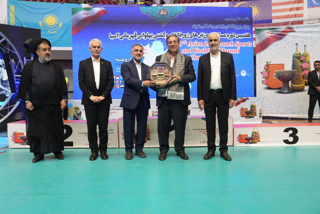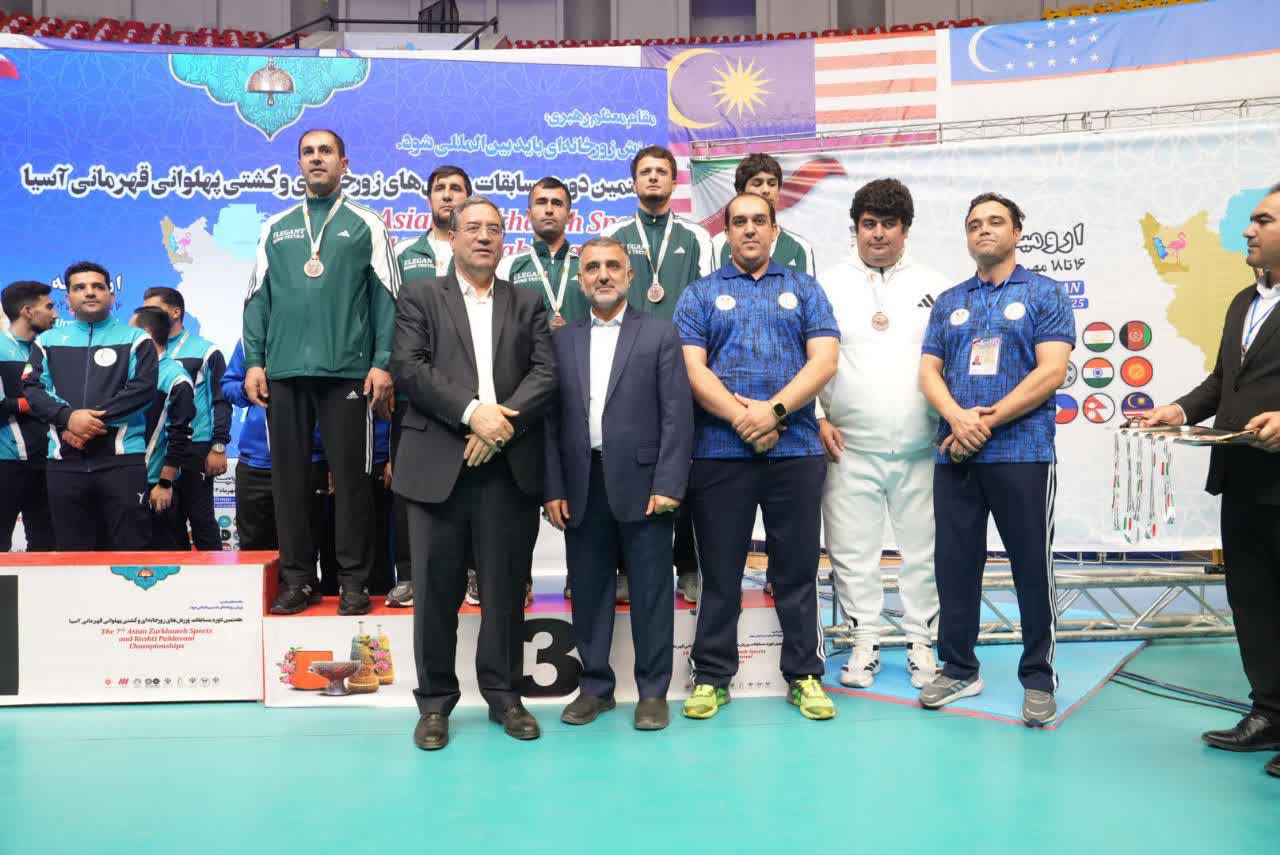 به گزارش روابط عمومی استانداری آذربایجان غربی، هفتمین دوره مسابقات ورزشهای زورخانهای و کشتی پهلوانی قهرمانی آسیا 2025 با شناخت قهرمانان رشتههای مختلف عصر امروز با حضور رضا رحمانی استاندار آذربایجانغربی و جمعی از مسئولان ملی و استانی در سالن الغدیر ارومیه به کار خود پایان داد.