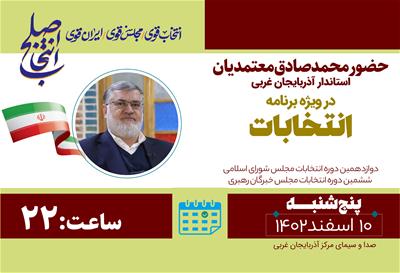 محمدصادق معتمدیان استاندار آذربایجانغربی امشب در ویژه برنامه انتخابات صدا و سیمای مرکز آذربایجانغربی حضور می یابد.