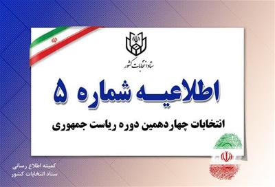 ستاد انتخابات کشور با انتشار اطلاعیه شماره 5 اعلام کرد: تبلیغات نامزدهای انتخابات چهاردهمین دوره ریاست جمهوری در ساعت 08:00 صبح روز پنجشنبه مورخ1403/4/7 به پایان می رسد و هرگونه فعالیت تبلیغاتی پس از آن ممنوع می باشد.