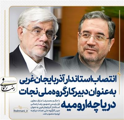 با حکم محمدرضا عارف معاون اول رئیس جمهور، رضا رحمانی استاندار آذربایجانغربی به عنوان دبیر کارگروه ملی نجات دریاچه ارومیه منصوب شد.