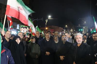 همزمان با بیستوچهارمین شب برگزاری تجمعات مردم و مسئولان در ارومیه، حجتالاسلام والمسلمین سیدمهدی قریشی نماینده ولیفقیه در استان و رضا رحمانی استاندار آذربایجانغربی همراه با دیگر مسئولان استانی و شهری و در فضایی صمیمی در میان شهروندان حضور یافتند.
