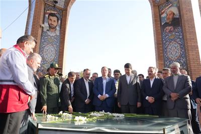 سیدستار هاشمی وزیر ارتباطات و فناوری اطلاعات و رضا رحمانی استاندار آذربایجانغربی به مقام شامخ شهدا در گلزار شهیدان باغ رضوان ارومیه ادای احترام کردند.