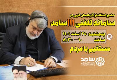 استاندار آذربایجان غربی روز پنجشنبه 25 اسفند 1401 راس ساعت 8:30 الی 10 بهصورت مستقیم پاسخگوی تماسهای مردم عزیز خواهد بود.