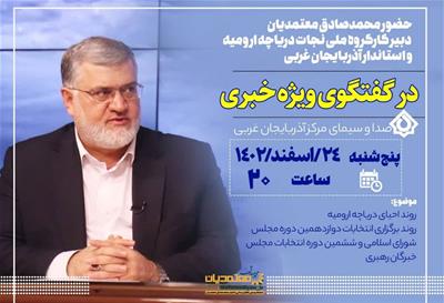 محمدصادق معتمدیان دبیرکارگروه ملی نجات دریاچه ارومیه و استاندار آذربایجانغربی، امشب در برنامه تلویزیونی گفتگوی ویژه خبری صداوسیمای مرکز استان حضور می یابد.