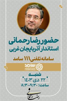 رضا رحمانی استاندار آذربایجانغربی شنبه 22 دی ماه در سامانه تلفنی 111 سامد حضور می یابد.