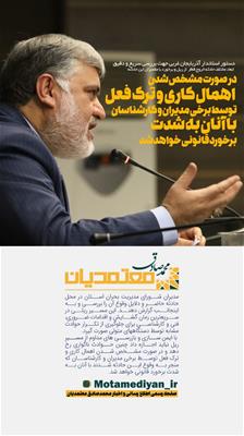 در صورت مشخص شدن اهمال کاری و ترک فعل توسط برخی مدیران و کارشناسان با آنان به شدت برخورد قانونی خواهد شد.