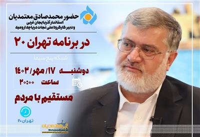 استاندار آذربایجانغربی و دبیر کارگروه ملی نجات دریاچه ارومیه در برنامه تلویزیونی تهران 20 حضور می یابد.