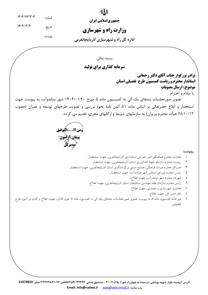 | 4 | نامه مصوبات | طرح تفصیلی شهرمیاندوآب |