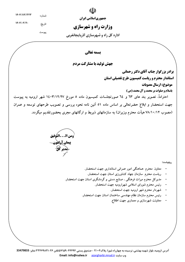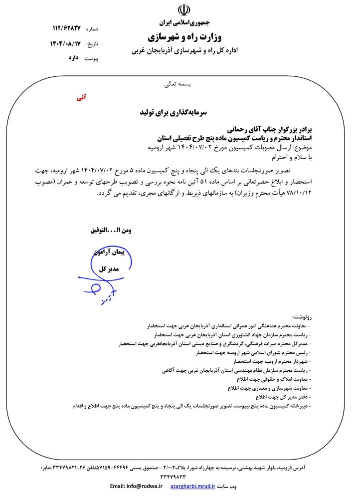 | 6 | نامه مصوبات | طرح تفصیلی شهر ارومیه |