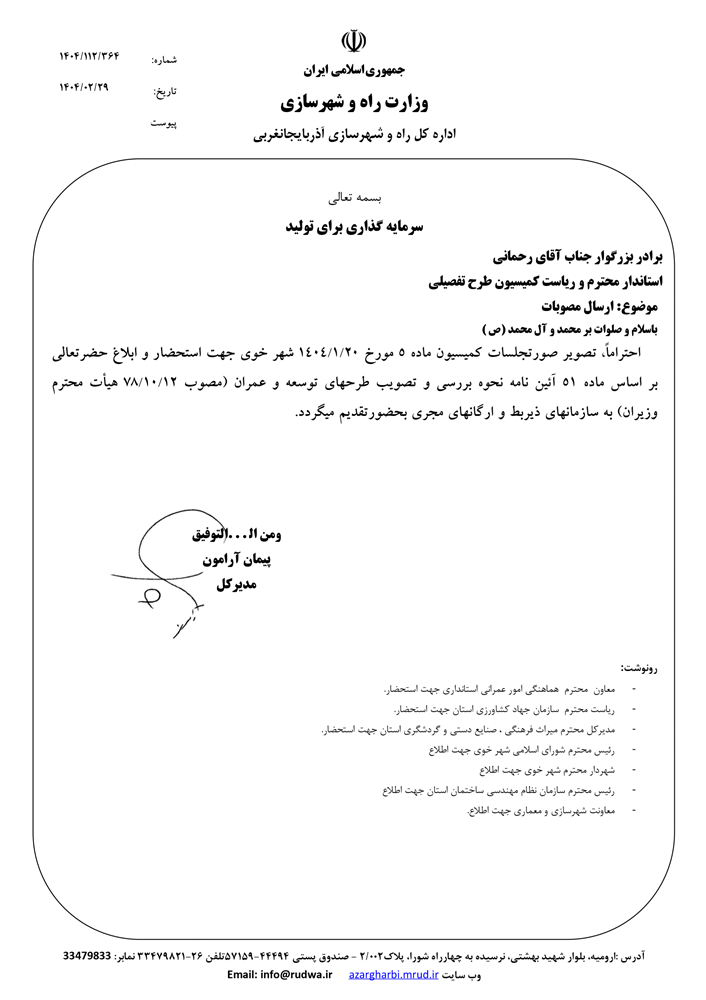 | 6 | نامه مصوبات | طرح تفصیلی شهر خوی |