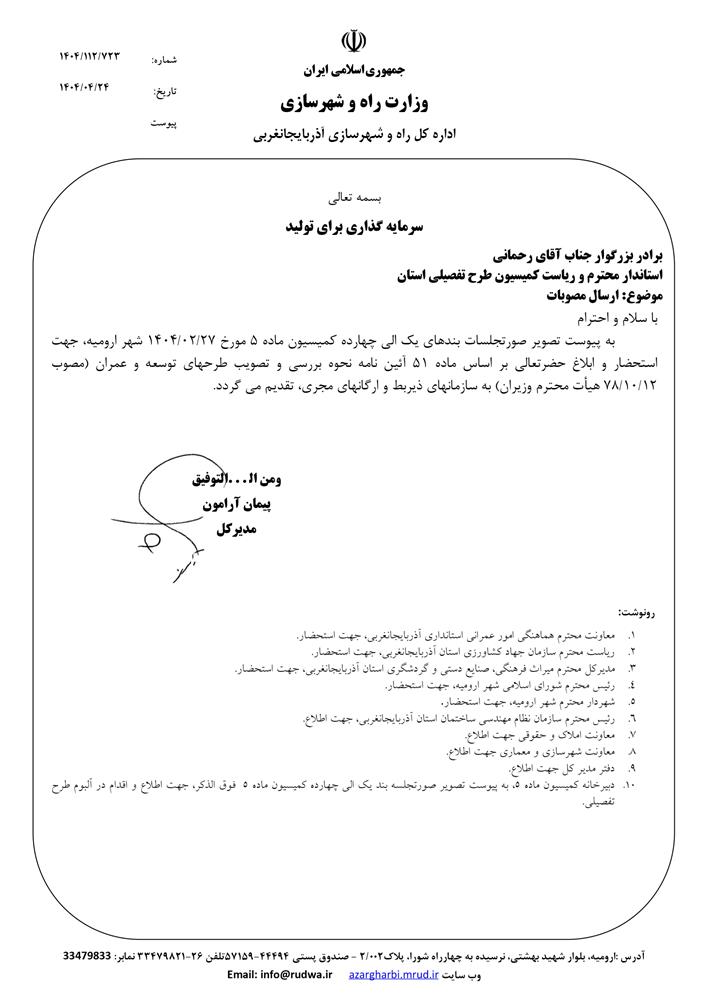 | 4 | نامه مصوبات | طرح تفصیلی شهر ارومیه |