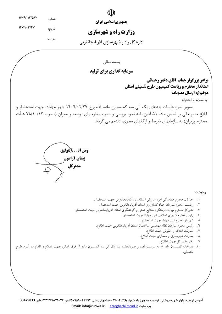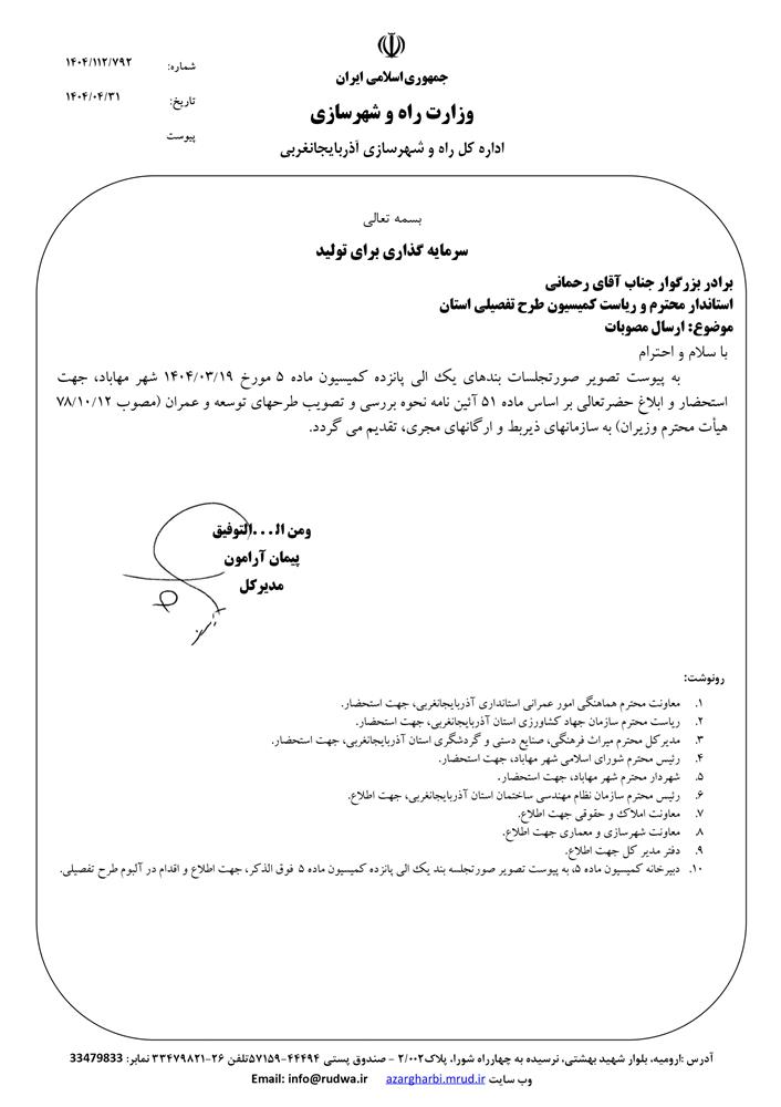 | 6 | نامه مصوبات | طرح تفصیلی شهر مهاباد |