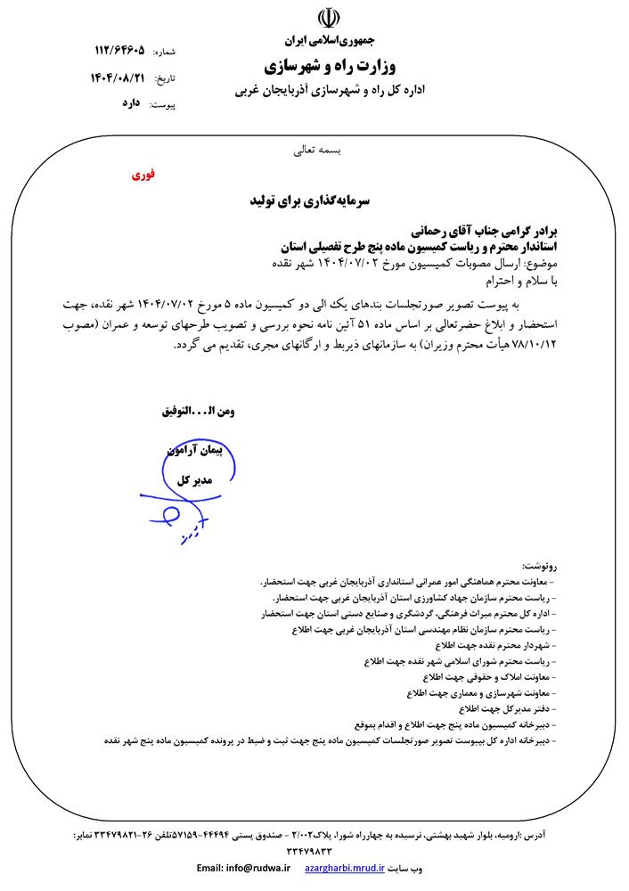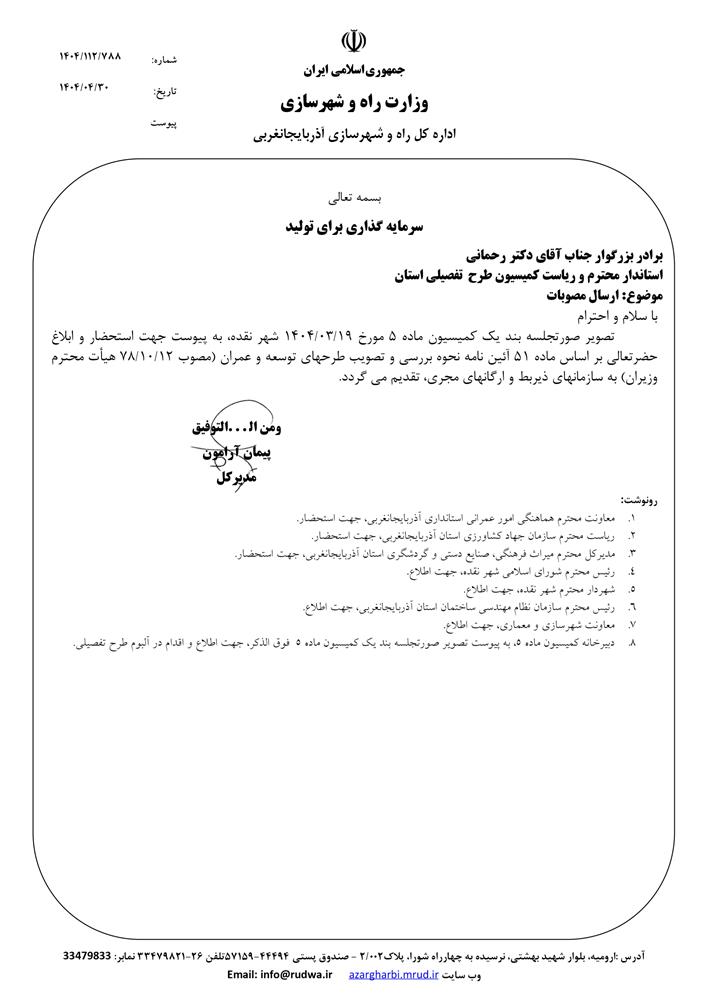 | 6 | نامه مصوبات | طرح تفصیلی شهرنقده |