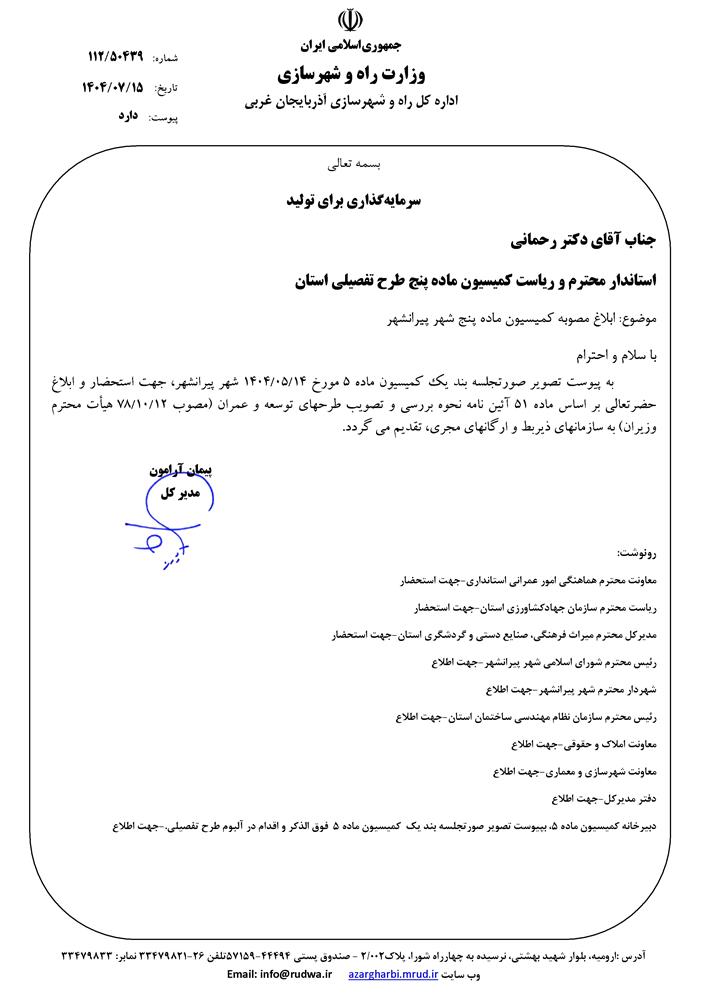 | 4 | نامه مصوبات | طرح تفصیلی شهر پیرانشهر |