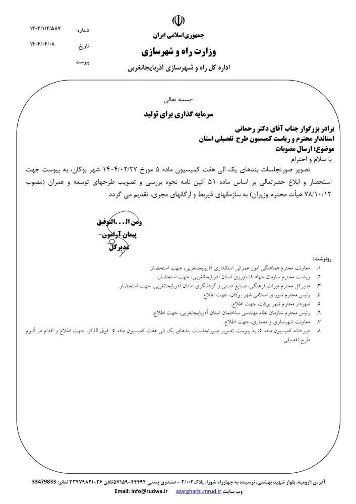 | 4 | نامه مصوبات | طرح تفصیلی شهربوکان |